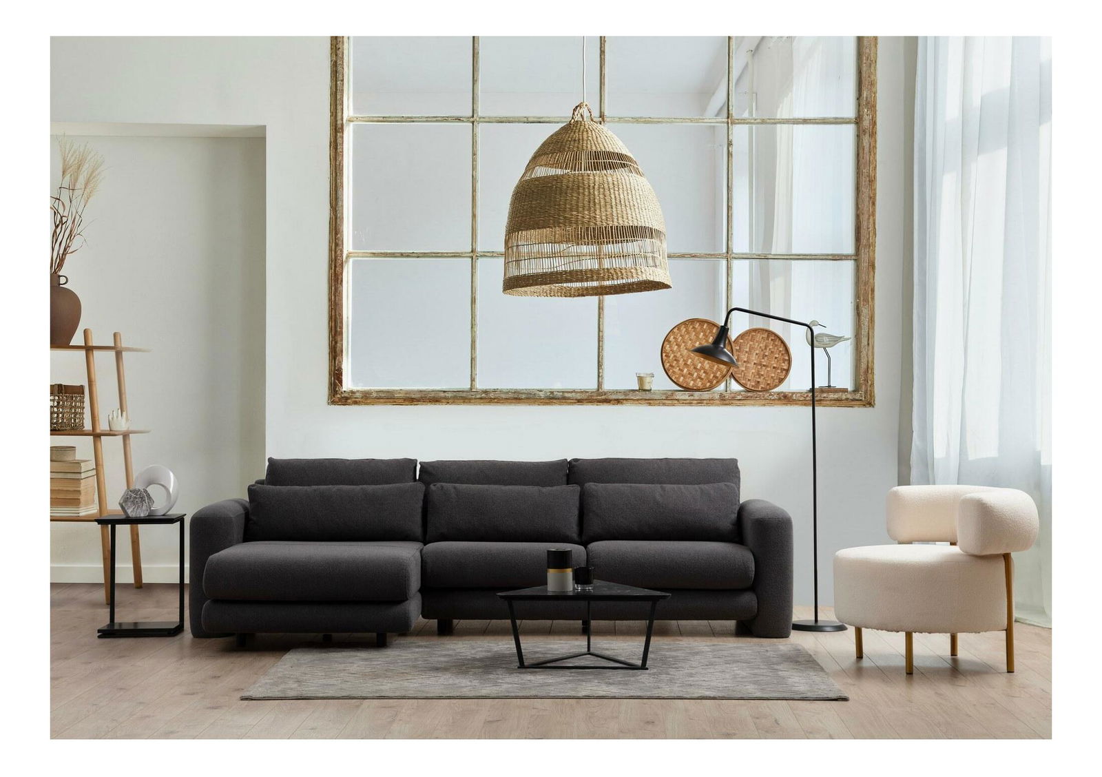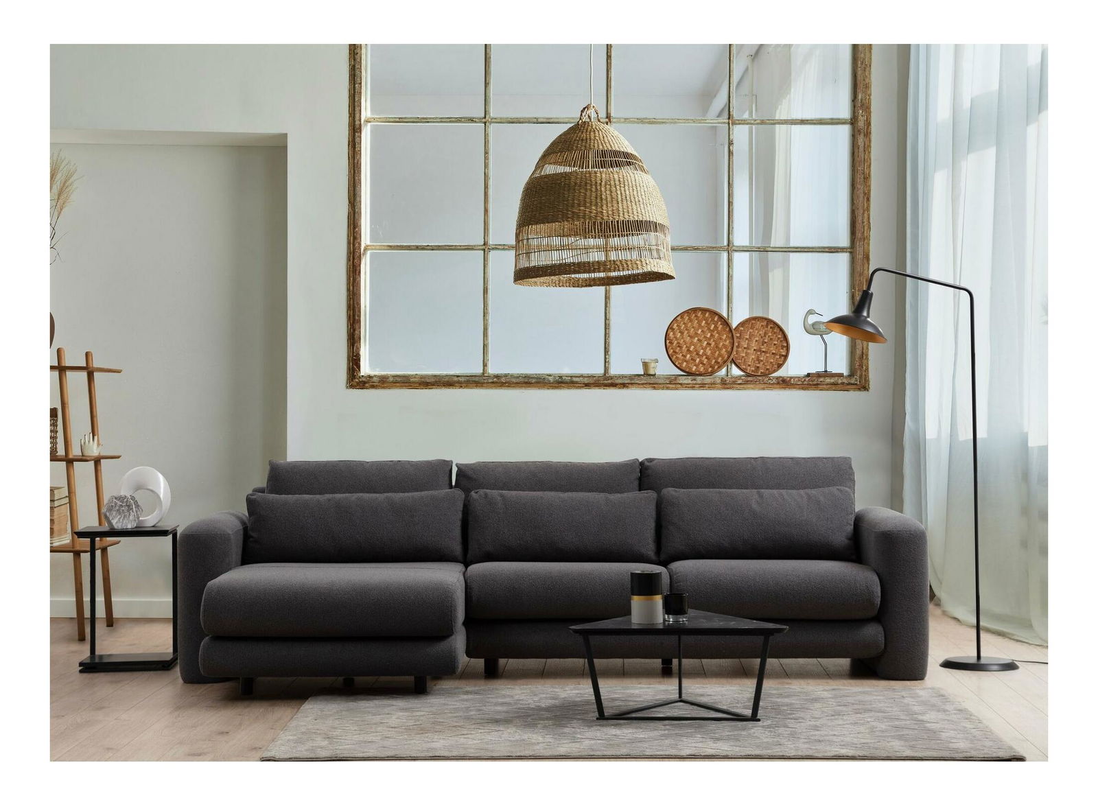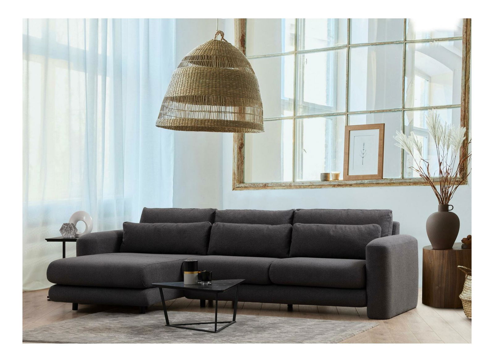 - Rohová sedačka Lelysena (L) (šedá + černá)