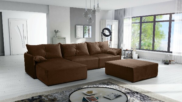 Jste fanouškem funkčního nábytku, který navíc vypadá stylově a perfektně zapadá do celkového designu interiéru? Rohová rozkládací sedačka Leonaro 2 představuje záruku pohodlí. Kombinace klasického designu s moderními povrchovými úpravami a čalouněním dodává kusu nábytku jedinečný charakter, který se perfektně hodí do každého interiéru, ať máte rádi minimalistický, moderní, nebo retro styl. Další výhodou je, že tato jedinečná rohová sedačka je vyrobena z vysokoelastické pěny T2844 a vlnitých pružin, díky čemuž je sedačka mimořádně měkká a zároveň si zachovává pružnost a zajišťuje přiměřenou oporu a stabilizaci těla během odpočinku. Sedačka Leonaro 2 navíc perfektně poslouží i jako místo pro noční odpočinek. Vybavena dvěma prostornými místy na ložní prádlo. Kromě toho souprava obsahuje také 3 velké a 2 malé dekorační polštářky + taburetka v ceně. Pokud si doma ceníte relaxace a dáváte přednost multifunkčnímu nábytku, rohová sedačka Leonaro 2 splní vaše očekávání. Dostupná v široké škále barev.