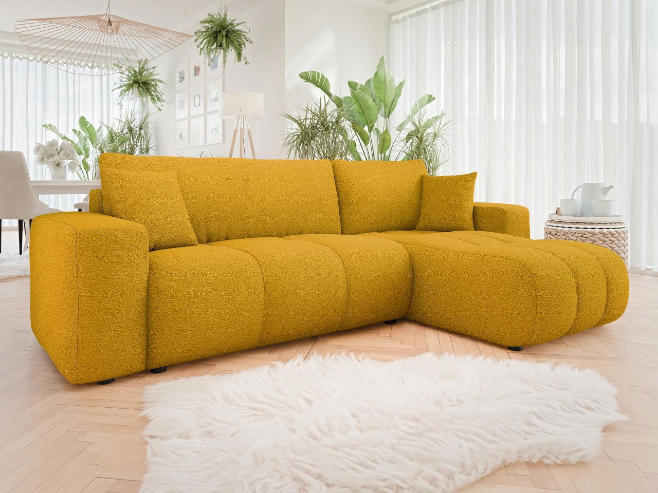 Rohová sedačka Lorew (hořčicová) (s úl. prostorem)