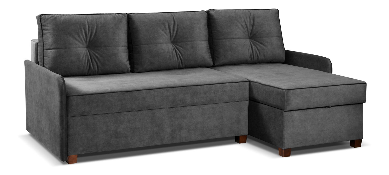 ZobrazitStylová rohová sedačka Manimi 02 (černá) (P) je ideálním doplňkem pro každý obývací pokoj, kancelář nebo recepci. Kromě svého moderního vzhledu nabízí také praktická řešení pro uskladnění věcí. Sedačka má dvě úložné prostory a rozložení pro příležitostné spaní o rozměrech 126x204 cm. Konstrukce sedačky je z nábytkové desky a masivního dřeva. Sedací část je vybavena bonellovými pružinami a vysokoelastickou pěnou T25, což zaručuje maximální komfort při sezení i spánku. Nohy jsou vyrobeny z bukového nebo ořechového dřeva. Sedačka má funkci spaní a úložný prostor. Výška sezení je 48 cm a hloubka sezení 57 cm. Výška opěradla je 46 cm a plocha spaní 202 x 147 cm. Rohová sedačka Manimi 02 (černá) (P) je vyrobena z kvalitních materiálů, které zaručují její dlouhou životnost a spokojenost zákazníka.