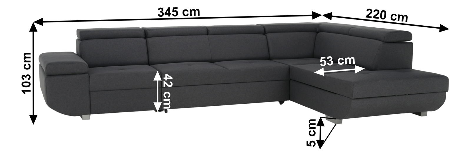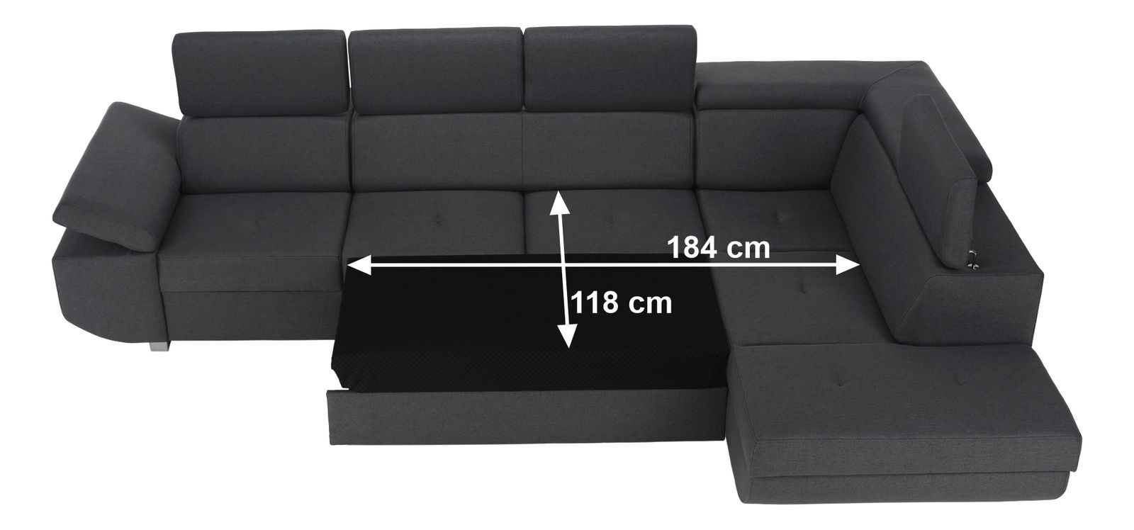 ZobrazitRohová sedačka Meven (tmavě šedá) je ideálním doplňkem pro váš obývací prostor. S výškou 103 cm a hloubkou 220 cm, tato pohodlná sedačka je vyrobena z látka Stark 382 a má výšku sedu 42 cm a hloubku sedu 53 cm. Sedačka má úložný prostor a je celočalouněná. Má kovové nožičky, 4 polohovací opěrky hlavy a krční páteře a opěrku na ruce s funkcí sklápění. Textilie má odolnost podle Martindale: 50000 oděrů, takže vám poskytne dlouhé období pohodlí. Sedačka je také rozkládací, což z ní činí praktický a funkční kus nábytku pro každý domov.