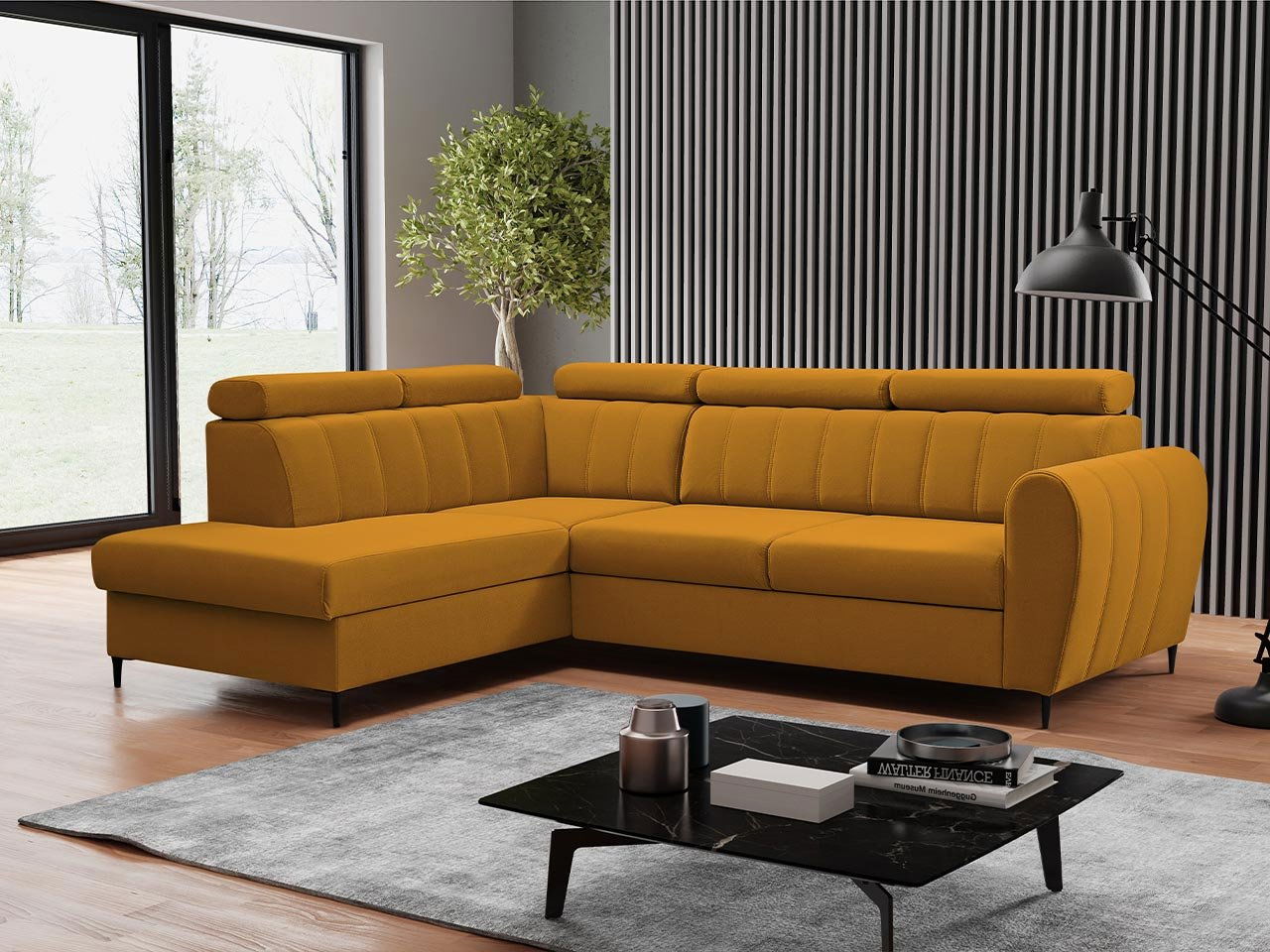 Rohová sedačka Potazuro L (hořčicová) (s úl. prostorem) (L)