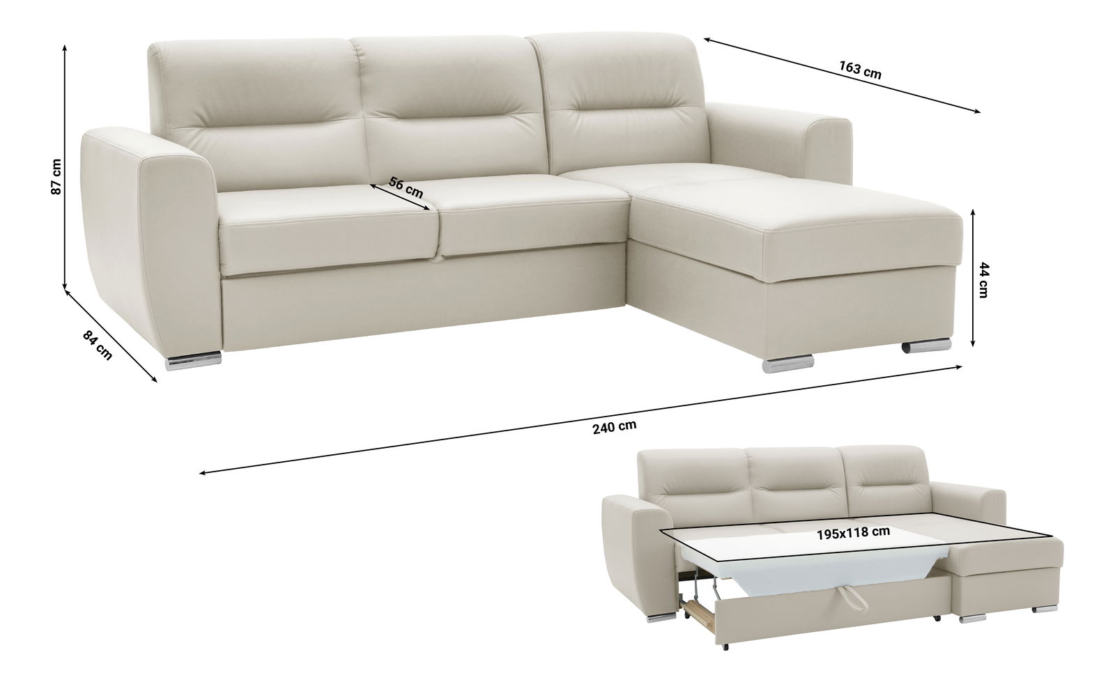 Rohová sedačka Renold (béžová) (s úl. prostorem) (L)