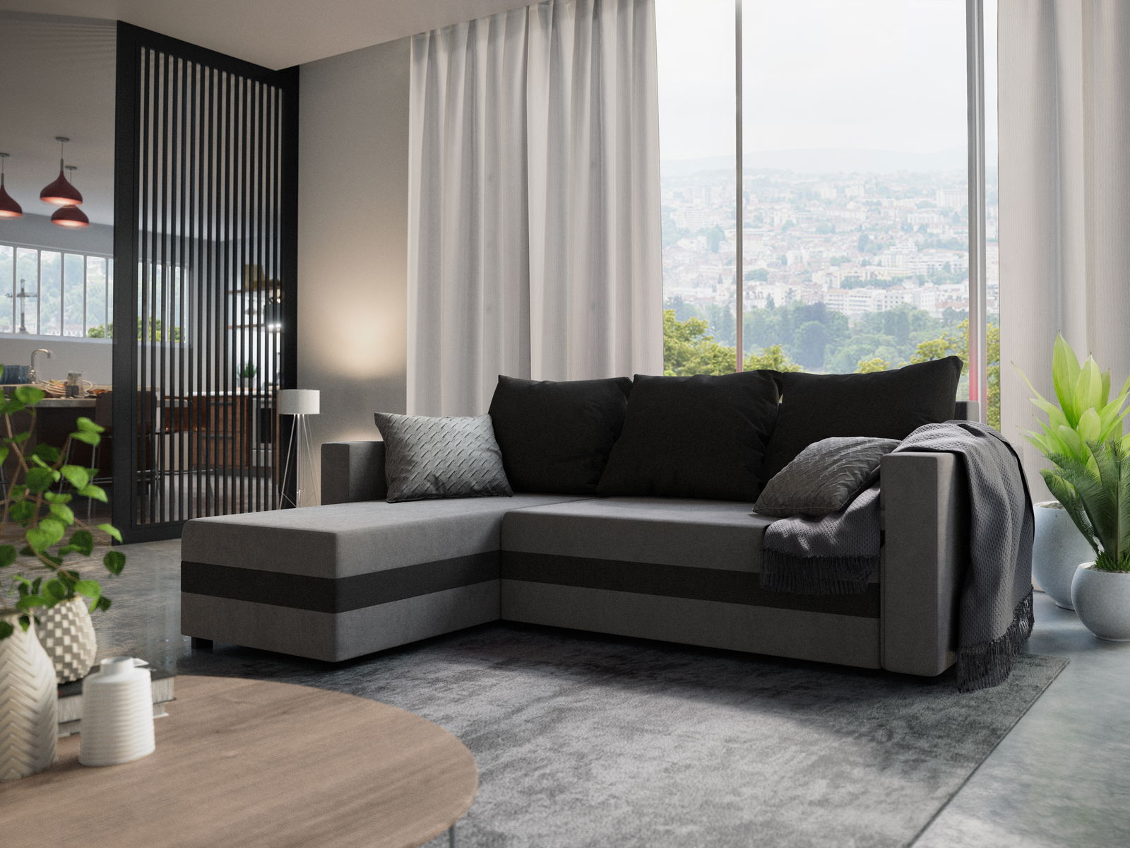 Rohová sedačka Safino (šedá + černá) (L)