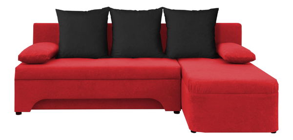 Rohová sedačka Saline červená + černé polštáře (1 úložný prostor, pěna)