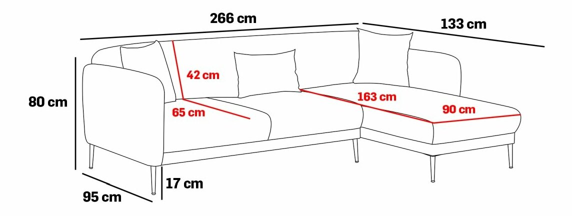 šířka: 266 x 133 cm cm výška: 80 cm hloubka: 95 cm