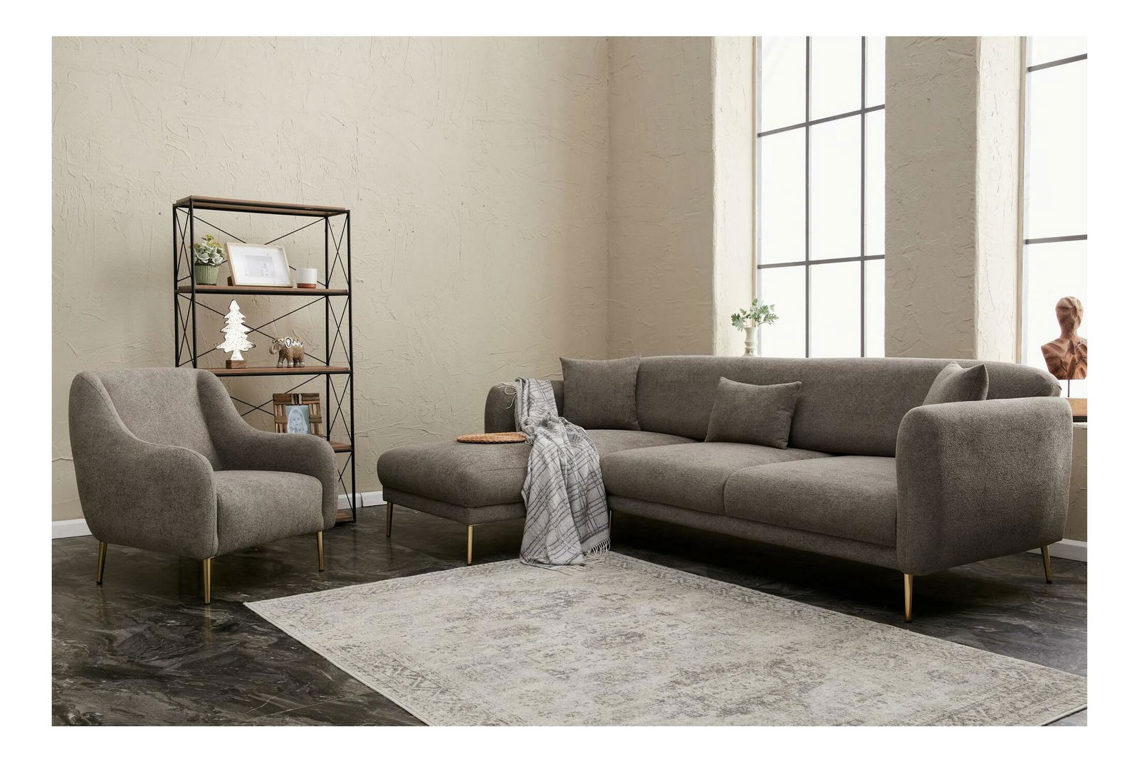 Rohová sedačka Simeon (L) (šedá + zlatá)