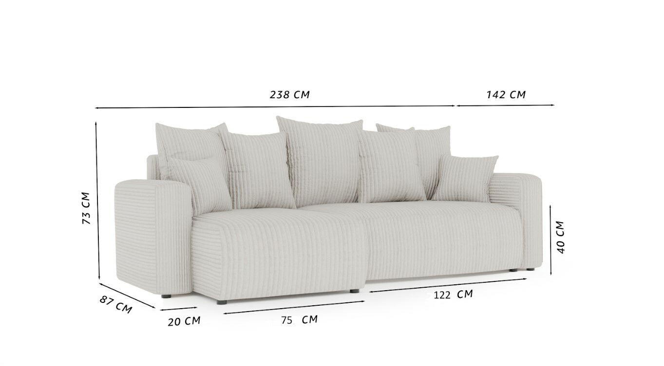 ZobrazitTato rohová pohovka pro 3 osoby je navržena s ohledem na odolnost a funkčnost. Je určena pro domácí použití a je ideální do obývacích pokojů, pracoven a jiných prostorných prostor. Produkt se může pochlubit pevnou konstrukcí a vysoce kvalitními materiály.