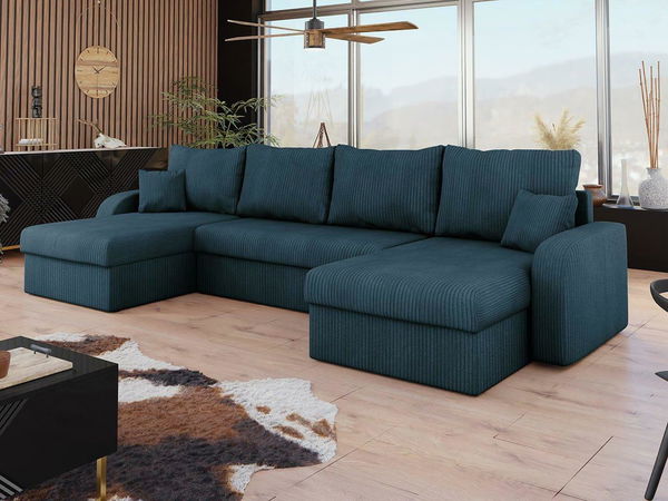 Rohová sedačka U Delmur U (tmavě modrá) (s úl. prostorem)