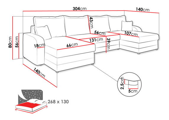 Plocha na spaní: 268 x 130 cm