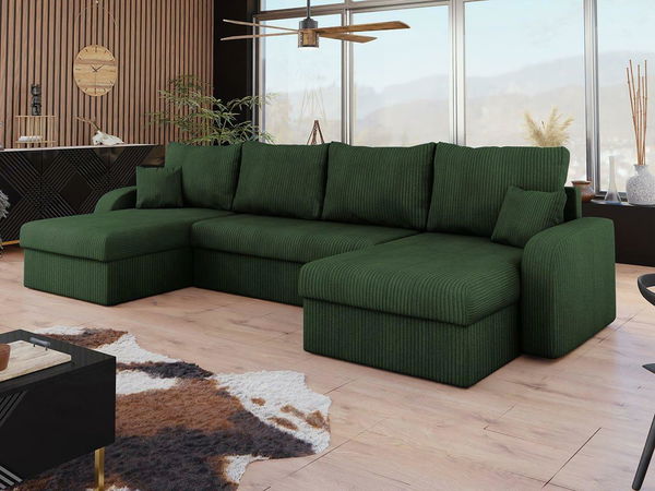 Rohová sedačka U Delmur U (tmavě zelená) (s úl. prostorem)