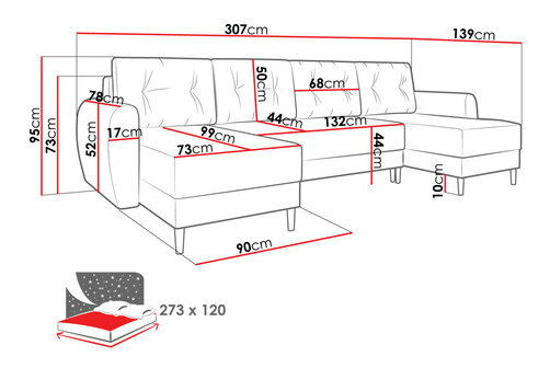 Plocha na spaní: 273 x 120 cm