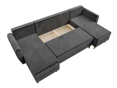 ZobrazitSkandinávský šik v moderním provedení, takto vypadá rozkládací rohová sedačka Keklat US! Žebrovaná látka, kterou je čalouněná, je mimořádně měkká a zvyšuje komfort používání. Sedačka ve tvaru U nabízí relaxační prostor pro celou rodinu a hosty navštěvující dům. Je to také skvělá možnost pro každodenní relax. Rohová sedačka s funkcí spánku má úložný prostor na ložní prádlo, do kterého se vejde peřina a polštáře. Skandinávský styl se odráží v jednoduchosti tvaru a elegantních vysokých nohou. Rohová sedačka do obývacího pokoje Keklat US je praktickým řešením pro každou příležitost!