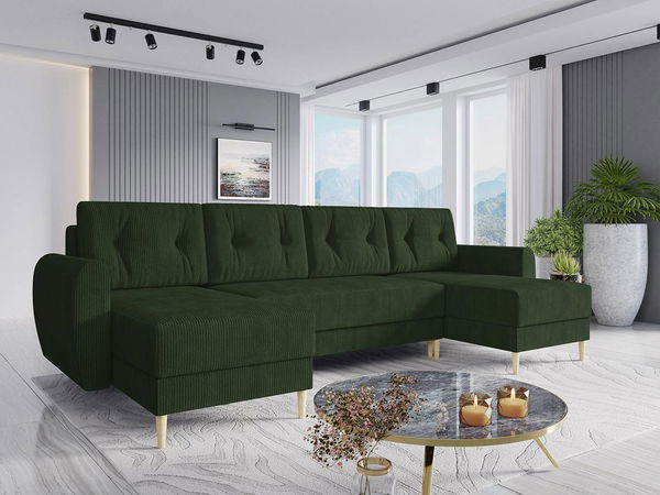 ZobrazitSkandinávský šik v moderním provedení, takto vypadá rozkládací rohová sedačka Keklat US! Žebrovaná látka, kterou je čalouněná, je mimořádně měkká a zvyšuje komfort používání. Sedačka ve tvaru U nabízí relaxační prostor pro celou rodinu a hosty navštěvující dům. Je to také skvělá možnost pro každodenní relax. Rohová sedačka s funkcí spánku má úložný prostor na ložní prádlo, do kterého se vejde peřina a polštáře. Skandinávský styl se odráží v jednoduchosti tvaru a elegantních vysokých nohou. Rohová sedačka do obývacího pokoje Keklat US je praktickým řešením pro každou příležitost!