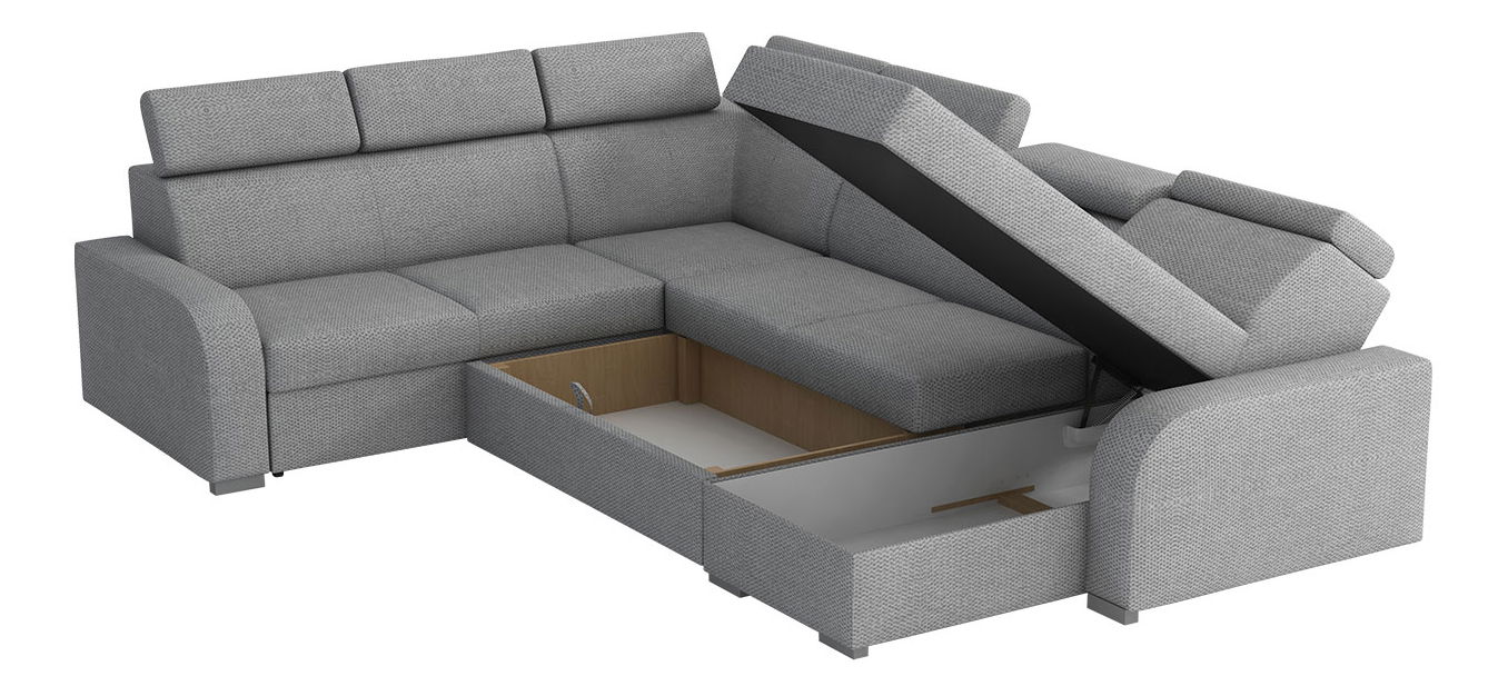 ZobrazitModerní sedačka Lyseri 2rR2pLC je model, který dokonale zaplní prostor velkého obývacího pokoje. Rohová sedačka je navržena jako písmeno "U", které poskytuje spoustu míst k sezení, stejně jako pohodlný gauč. Jednoduchý tvar nábytku byl obohacen o takové detaily, jako je nízká loketní opěrka a nastavitelné opěrky hlavy, které uvolňují krk po náročném dni. Plně funkční rohová sedačka má navíc možnost rozložení čí se přemění na pohodlné lůžko a je vybavena úložným prostorem na ložní prádlo. Za povšimnutí stojí i komponenty, ze kterých byla rohová sedačka vyrobena, a to pružná pěna odolná proti deformaci a pružina faliste.