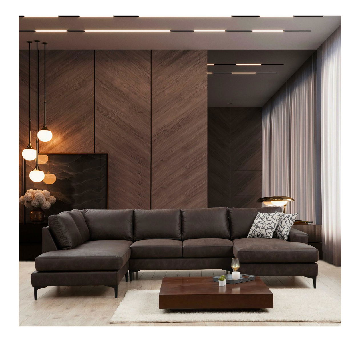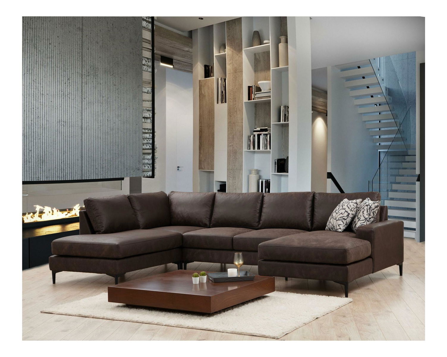 Rohová sedačka U Portobeno 2 (hnědá + černá)