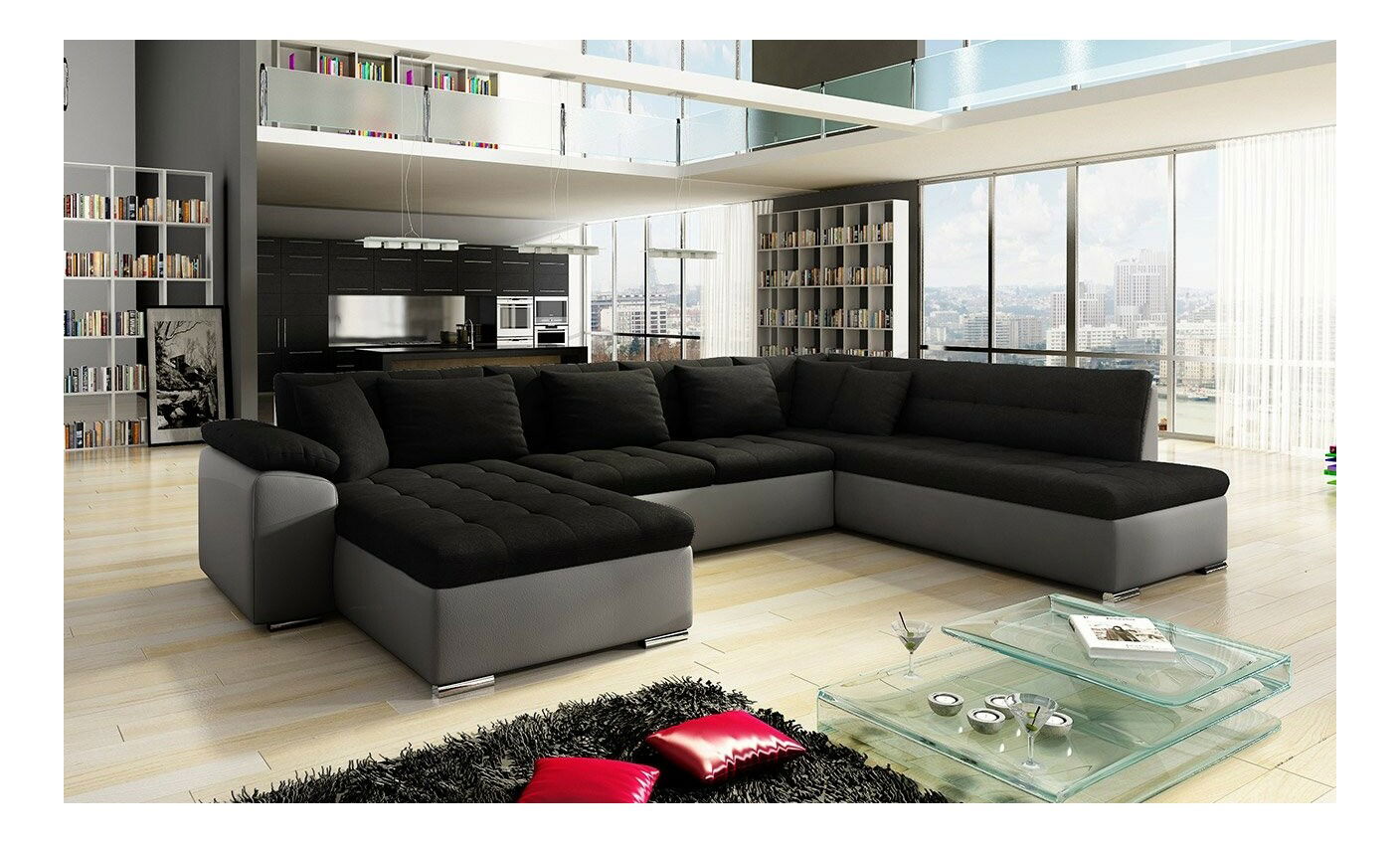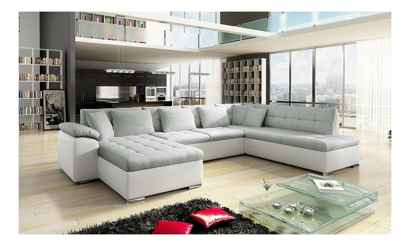 Rohová sedačka U Talina s funkcí spaní (L) (ekokůže Soft 011 + Majorka 03)