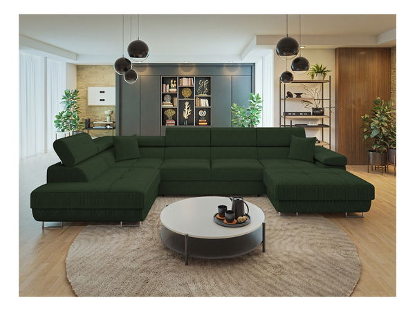 ZobrazitRohová sedačka Terazuro Bis S s funkcí spánku bude vypadat elegantně ve vašem obývacím pokoji. Žebrovaná potahová látka jí dodává styl a zvyšuje komfort používání. Charakteristická textura dokonale zapadá do moderního i klasického designu interiéru. Rohová rozkládací sedačka Terazuro Bis S je nejen vizuálně přitažlivá, ale také vysoce praktická. Díky prostornému úložnému prostoru na ložní prádlo je snadné udržovat pořádek v ložnici nebo obývacím pokoji bez ohledu na počet dalších peřin, polštářů nebo přikrývek. Nastavitelné opěrky hlavy poskytují dodatečné pohodlí při odpočinku a umožňují vám nastavit výšku podpory podle vašich preferencí.