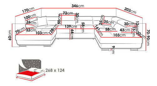 Plocha na spaní: 268 x 124 cm