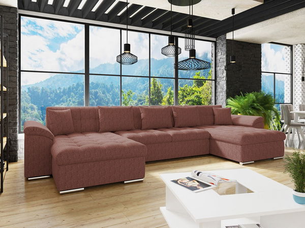 Rohová sedačka ve tvaru U je skvělou volbou pro velký pokoj. Wicenzota vám zpříjemní každou chvíli! Je čalouněná módní pruhovanou látkou, která je měkká a příjemná na dotek. Poskytne neuvěřitelné pohodlí při odpočinku. Nabízí spoustu prostoru a bez problémů pojme celou rodinu při sledování oblíbeného filmu. Rohová sedačka s funkcí na spaní také poskytne hostům další prostor pro přenocování. Velká plocha na spaní umožní dobrý a pohodlný spánek. Součástí soupravy jsou také polštáře na zip.