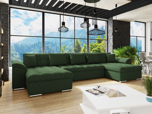 Rohová sedačka ve tvaru U je skvělou volbou pro velký pokoj. Wicenzota vám zpříjemní každou chvíli! Je čalouněná módní pruhovanou látkou, která je měkká a příjemná na dotek. Poskytne neuvěřitelné pohodlí při odpočinku. Nabízí spoustu prostoru a bez problémů pojme celou rodinu při sledování oblíbeného filmu. Rohová sedačka s funkcí na spaní také poskytne hostům další prostor pro přenocování. Velká plocha na spaní umožní dobrý a pohodlný spánek. Součástí soupravy jsou také polštáře na zip.