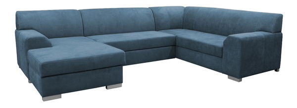 Rohová sedačka ve tvaru U Bolzano (tmavě modrá) (L) je moderní, elegantní a pohodlný kousek nábytku, který zaručí vynikající komfort a styl do každého obývacího pokoje. vyrobena ze špičkových materiálů a má kvalitní vyplňování, což zajišťuje dokonalou oporu pro záda a pohodlí při sezení Navržena byla s ohledem na detaily, které dodávají sedačce zvláštní šmrnc. Tmavě modrá barva přidává do každé místnosti sofistikovanost a eleganci.