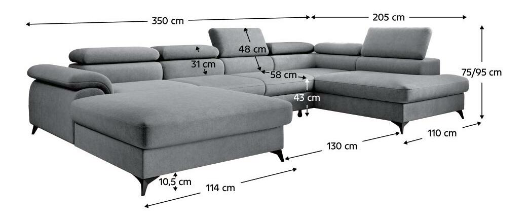 Rohová sedačka ve tvaru U Coly (šedá) (s úl. prostorem) (P)