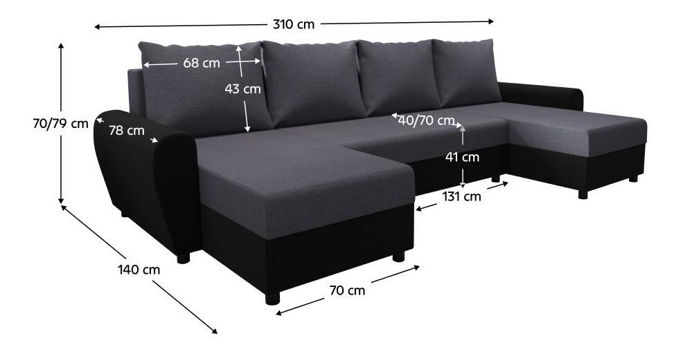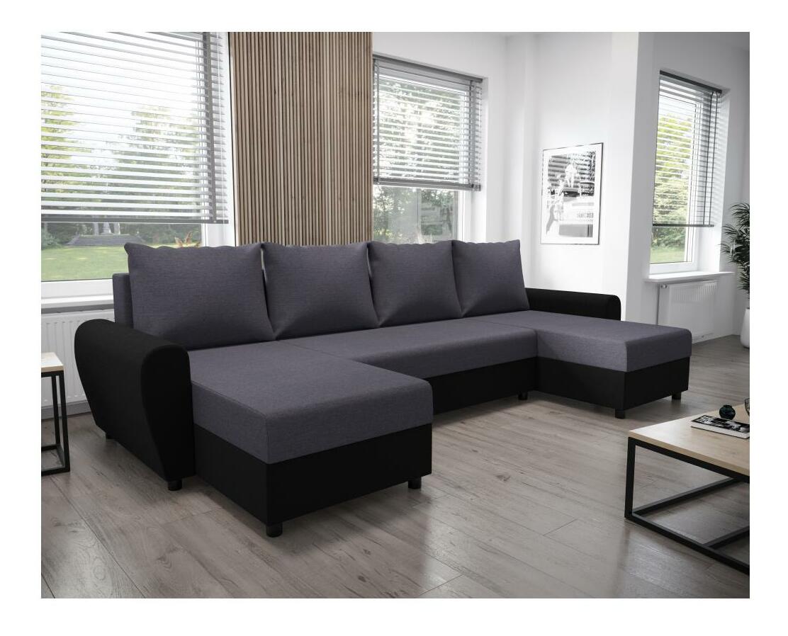 Rohová sedačka ve tvaru U Debiera (šedá + černá) (s úl. prostorem)