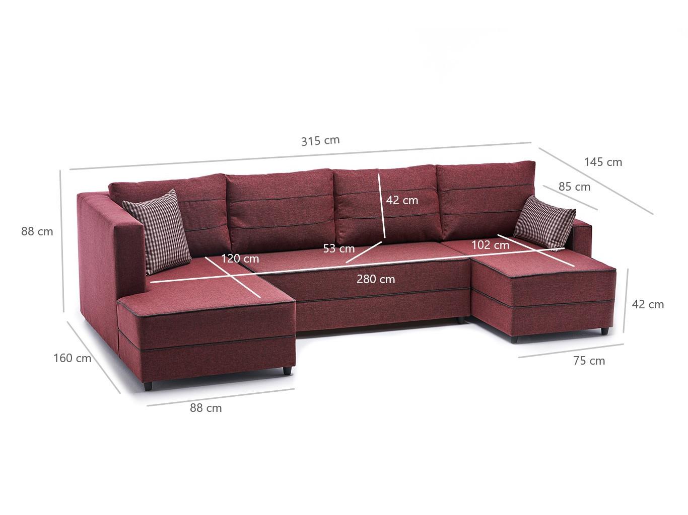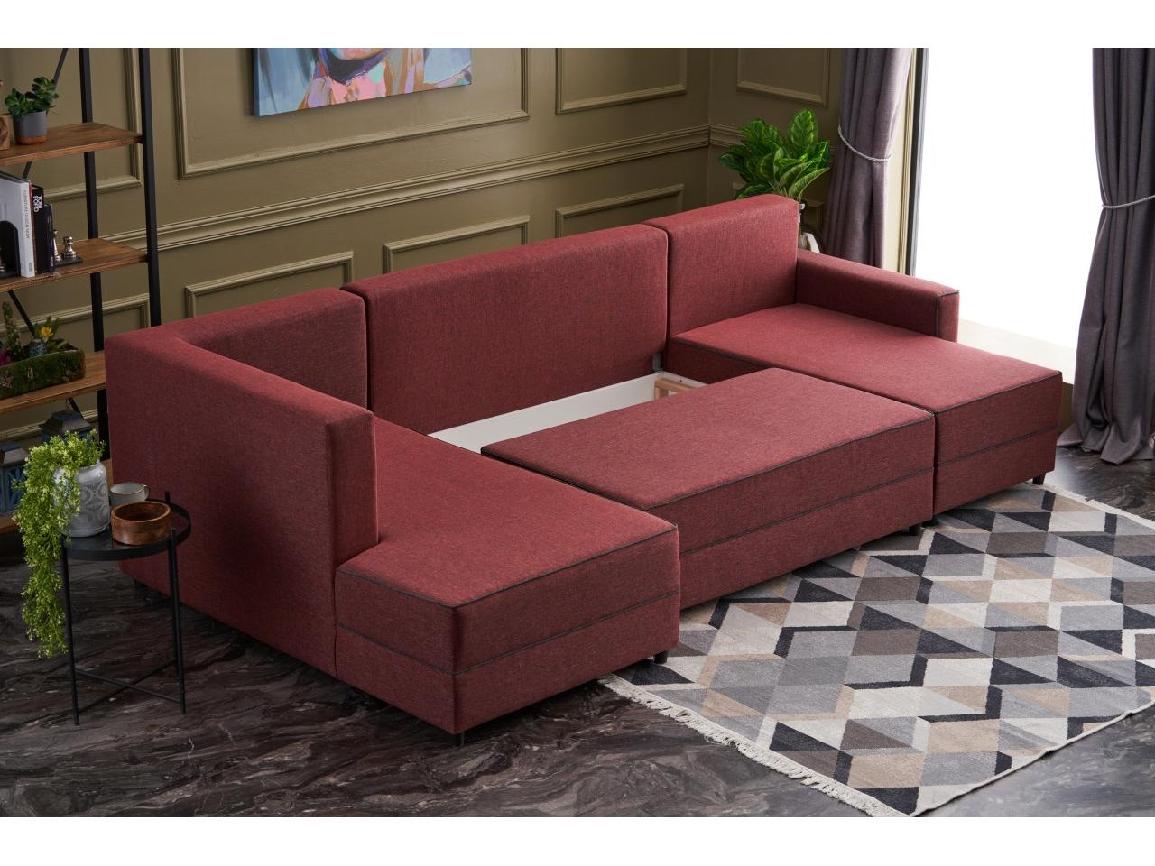 Rohová sedačka ve tvaru U Emilie (s úl. prostorem) (červená)
