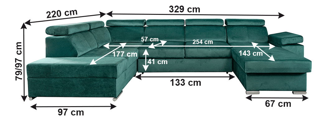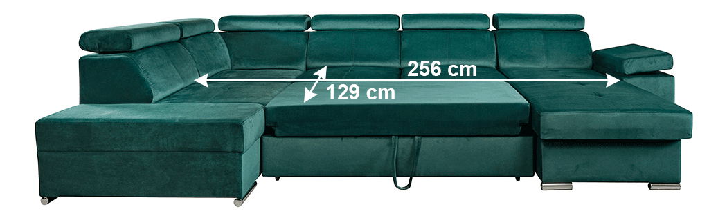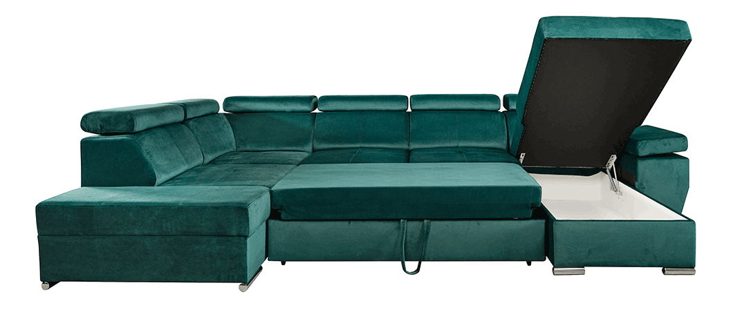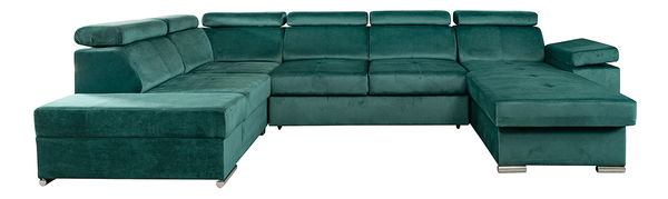 Lamour, stylová a moderní sedačka, která vám přináší komfort a místo k relaxaci. Prostřednictvím ní získáte přímo u vás doma místo, kde si můžete dopřát plnohodnotný odpočinek. Velkorysé rozměry, které nabízí tato sedačka ve tvaru U, v kombinaci s výraznou, ale přitom velmi elegantní smaragdovou barvou, dodá vašemu obývacímu pokoji exkluzivitu a luxus. Dalším pozitivem je celočalouněné provedení kvalitní látkou KRONOS. Sedačka Lamour disponuje až šesti polohovacími opěrkami hlavy, které lze přizpůsobit v pěti stupních. Polohovací opěrka na ruce vyzvedne její pozitiva na maximum. Lamour disponuje také úložným prostorem. Je rozkládací, pohodlně se na ní vyspí dva lidé. Plocha na spaní dosahuje rozměrů 129x256 cm. Sedačka má 6 kovových nohou ve výšce 4,5 cm od země. Jádro sedačky je tvořeno pružinami falista a pěnou v tloušťce 10 cm. Pro vyšší komfort sezení jsou v opěrkách integrovány elastické pásy a pěna o tloušťce 7 cm. S tímto kvalitním provedením a moderním designem se sedačka Lamour stane ústředním prvkem vaší domácnosti.