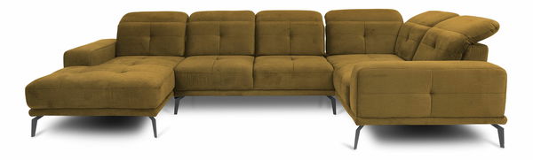 Rohová sedačka ve tvaru U Nicolette (hořčicová) je ideální kousek nábytku pro ty, kteří rádi relaxují v pohodlí svého domova. Sedačka má pohodlné sezení pro 6 osob a je vyrobena z kvalitní borovice. Tkanina Nube 45 je odolná a snadno udržovatelná. Sedačka nemá funkci rozkladu pro příležitostné spaní ani úložný prostor. Výška sedu je 44 cm a hloubka sedu je 54-69 cm. Nožičky jsou vyrobeny z černé oceli a mají výšku 18 cm. Sedačka je dodávána v demontu. S nastavitelnou opěrkou hlavy a čalouněnými zády je tato sedačka dokonalou volbou pro rodinné kino nebo večerní posezení s přáteli.