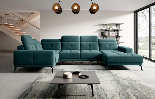 ZobrazitRohová sedačka ve tvaru U Nicolette modrošedá (L) o výšce 57-77 cm a hloubce 201 cm je ideálním místem pro relaxaci a posezení s přáteli. Tato pohodlná sedačka nenabízí úložný prostor ani možnost rozložení pro příležitostné spaní. Tkanina Velvetmat 38 poskytuje odolnost a pevnost a má hladký povrch s odleskem, což usnadňuje její péči. Korpus je vyroben z borovice a výplň tvoří HR pěna typu T21 + T25 s vlnovou pružinou typu B. Sedačka má výšku sedáku 44 cm a hloubku sedáku 54-69 cm, šířku područky 28 cm a nabízí 6 míst k sezení. Ramena jsou zapuštěná a opěrka hlavy je nastavitelná. Nožičky jsou černé oceli a mají výšku 18 cm. Hřbet je také čalouněný. Sedačka se dodává v demontu.