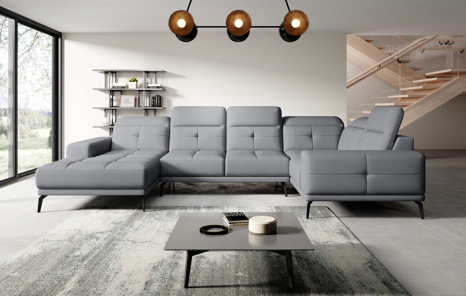 Rohová sedačka ve tvaru U Nicolette (světle šedá) je pohodlná sedačka, která láká k relaxaci a posezení s přáteli. Sedačka je vyrobena z borovice, má vlnovou pružinu typu B a výplň z HR pěny typu T21 + T25. Výška sedu je 44 cm, hloubka sedu je 54-69 cm a šířka područky 28 cm. Sedačka má nastavitelnou opěrku hlavy, čalouněná záda a černé ocelové nožičky o výšce 18 cm. Tkanina Poco 04 má pevnost a odolnost, hladký povrch s odleskem a snadnou péči, bez úložného prostoru a možnosti rozkladu pro příležitostné spaní. Dodáváme v demontu. Tato rohová sedačka nabízí 6 míst k sezení a je ideální pro rodiny nebo večírky s přáteli.