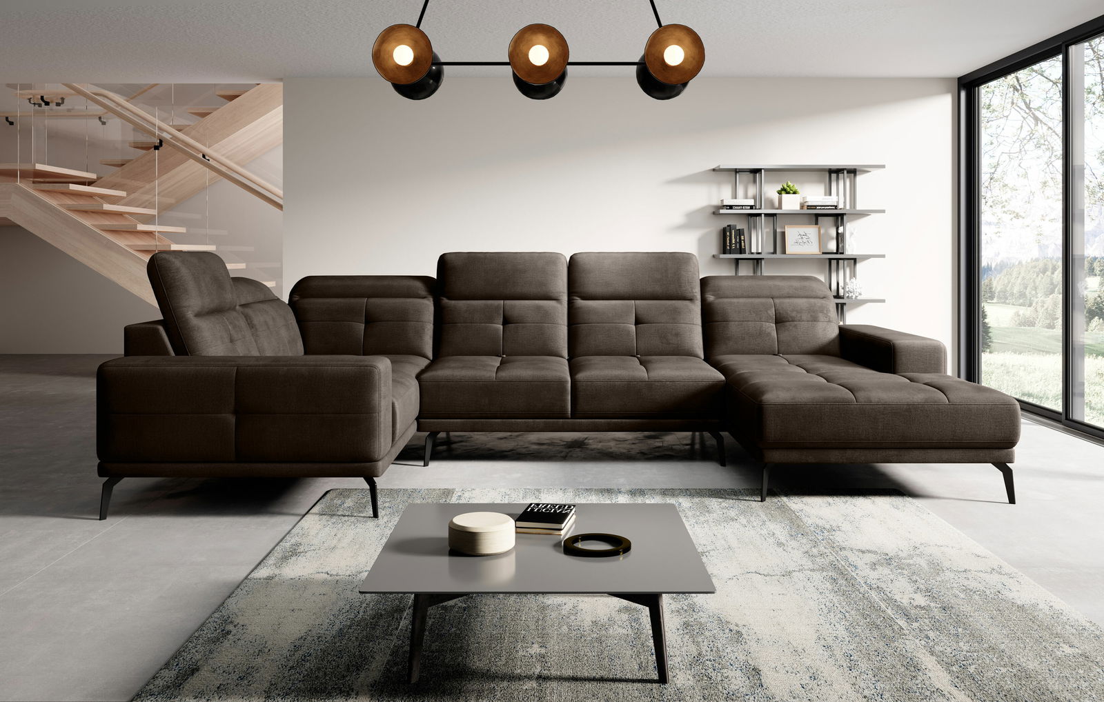 Rohová sedačka ve tvaru U Nicolette (tmavě hnědá) (L)