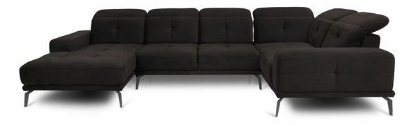 ZobrazitRohová sedačka ve tvaru U Nicolette (tmavě hnědá) (P) je pohodlná sedací souprava o výšce 57-77 cm a hloubce 201 cm. Je ideální pro relaxaci a posezení s přáteli a její tkanina Nube 22 je pevná, odolná a snadno se udržuje. Sedačka nemá žádný úložný prostor ani funkci rozkladu na spaní, ale její výplň HR pěny s typem pěny T21+T25 a vlnová pružina typu B zaručují pohodlí a komfort. Sedačka má 6 míst k sezení, s výškou sedu 44 cm a hloubkou sedu 54-69 cm. Areály k sezení mají zapuštěná ramena s nastavitelnou opěrkou hlavy. Nožičky jsou z černé oceli a mají výšku 18 cm, čalouněná záda zvyšuje pohodlí. Sedačka je vyrobena z borovice a je dodávána v demontu.