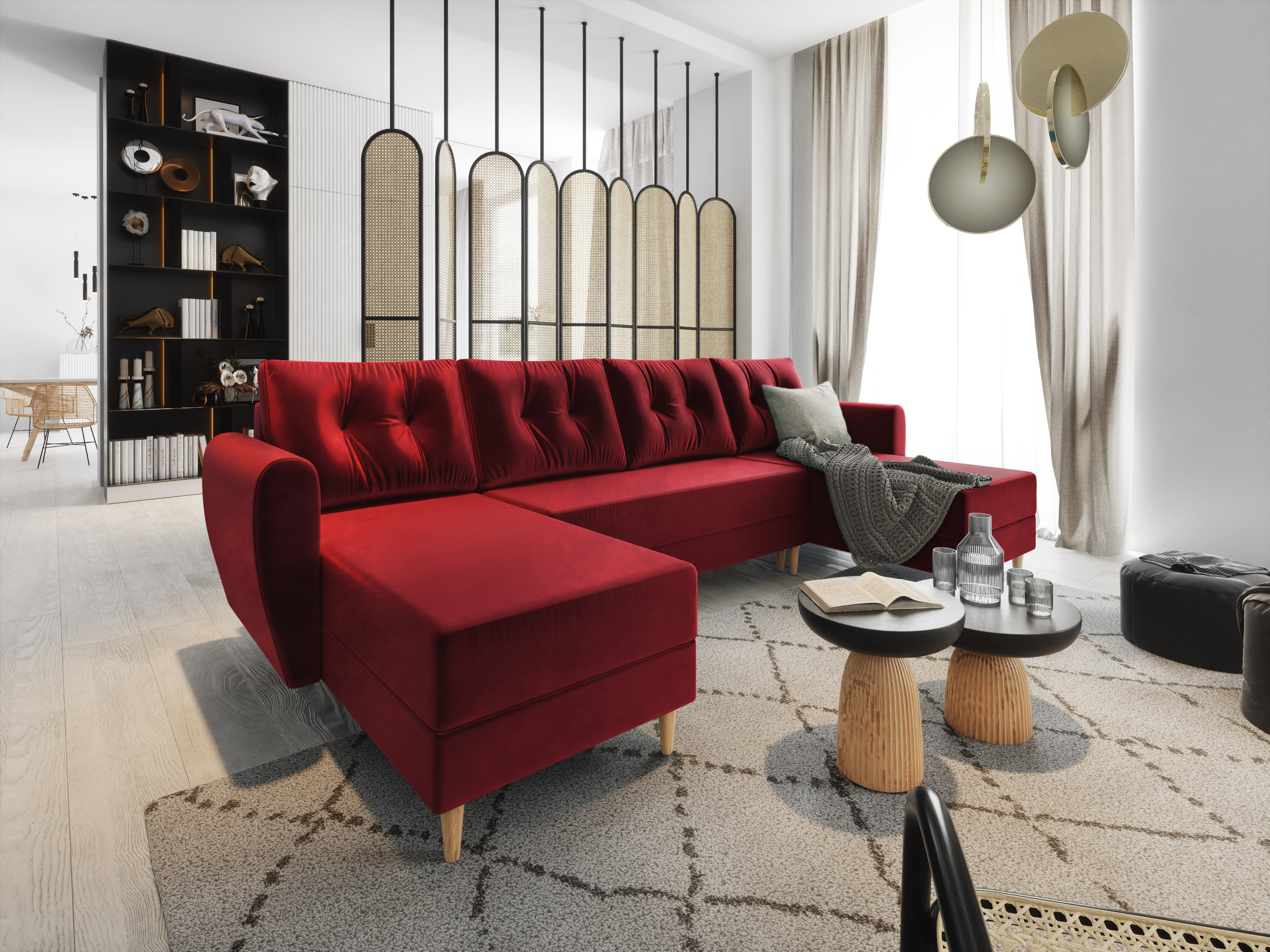 Rohová sedačka ve tvaru U Palermo (červená) (L)
