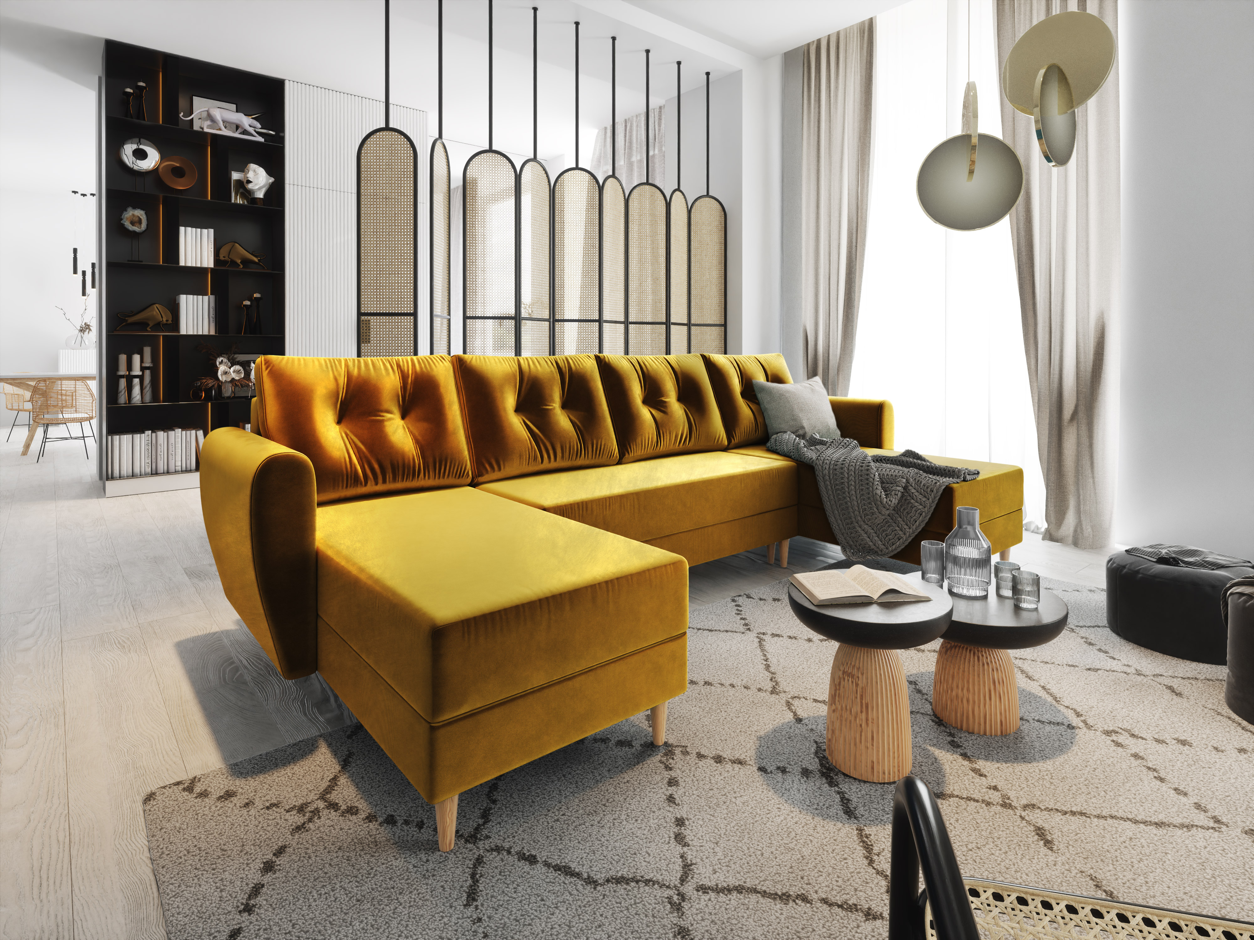 Rohová sedačka ve tvaru U Palermo (medová) (L)