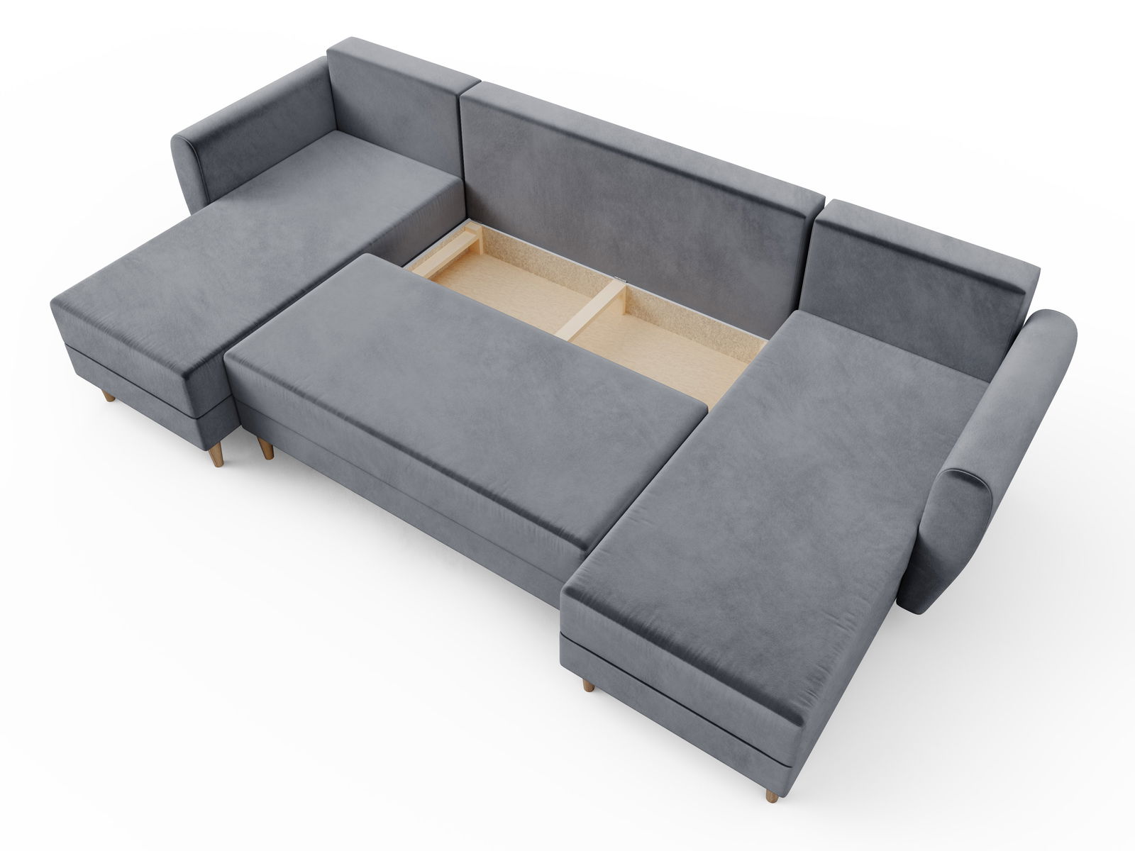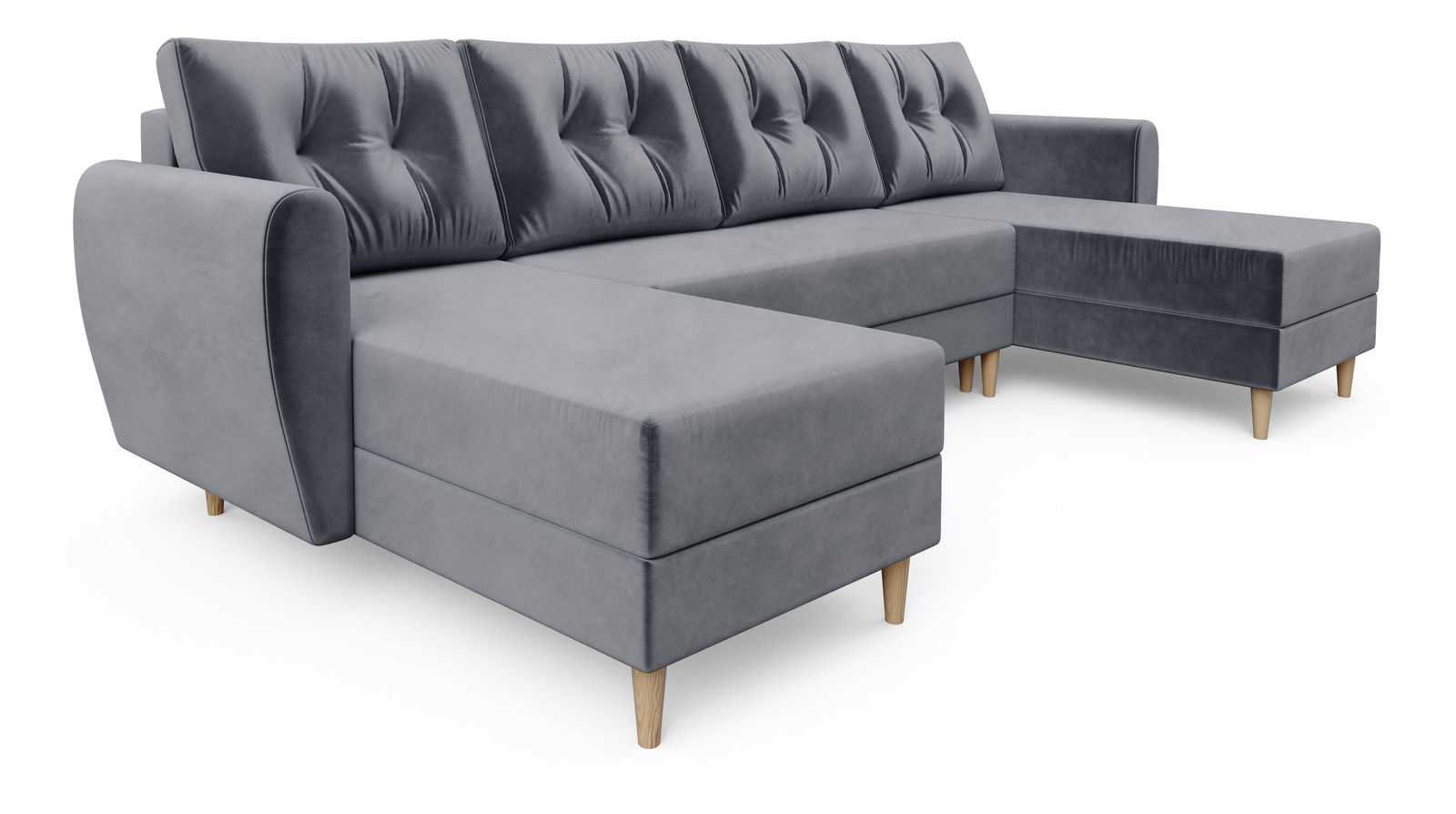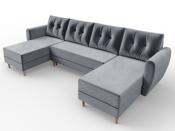 Moderní rohová sedačka Paladio ve tvaru U padne do oka každému, kdo má rád pěkný nábytek. Sedačku lze snadno rozložit, čímž získáte plochu na spaní. Vaše návštěva se tak může pohodlně vyspat na sedačce. K sedačce jsou čtyři polštáře na zip plněné PU pěnou. Celá sedačka je potažena látkou.