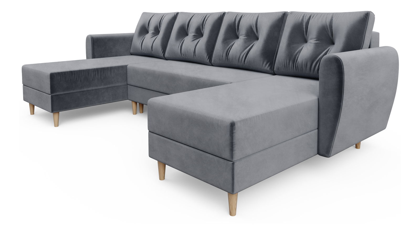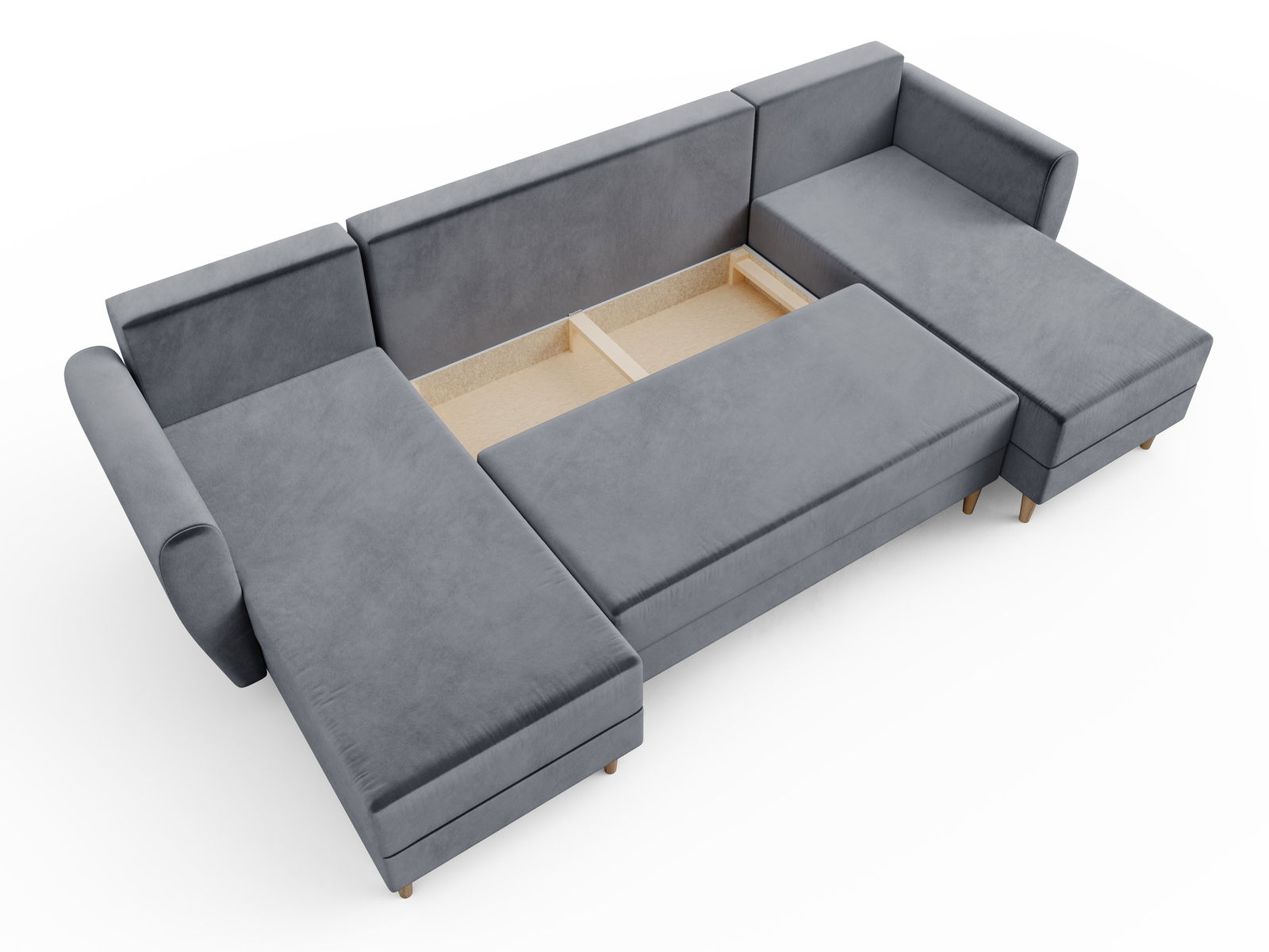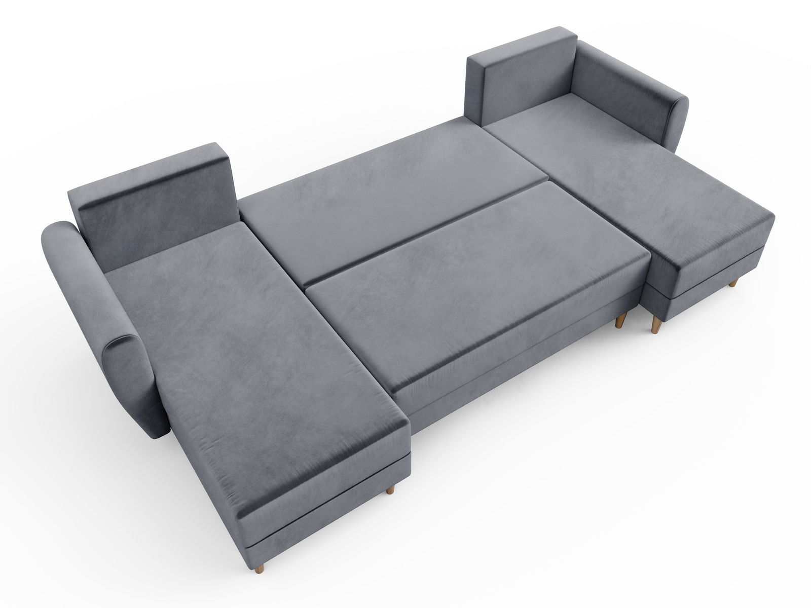 Moderní rohová sedačka Paladio ve tvaru U padne do oka každému, kdo má rád pěkný nábytek. Sedačku lze snadno rozložit, čímž získáte plochu na spaní. Vaše návštěva se tak může pohodlně vyspat na sedačce. K sedačce jsou čtyři polštáře na zip plněné PU pěnou. Celá sedačka je potažena látkou.