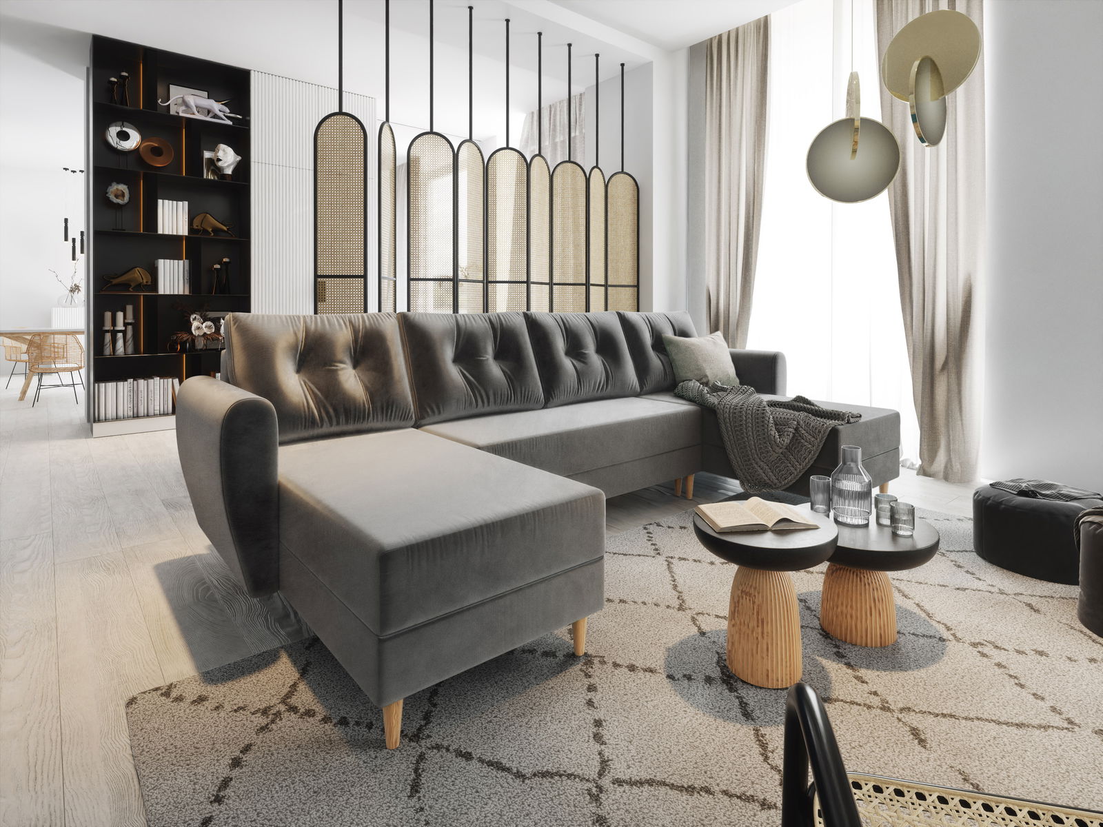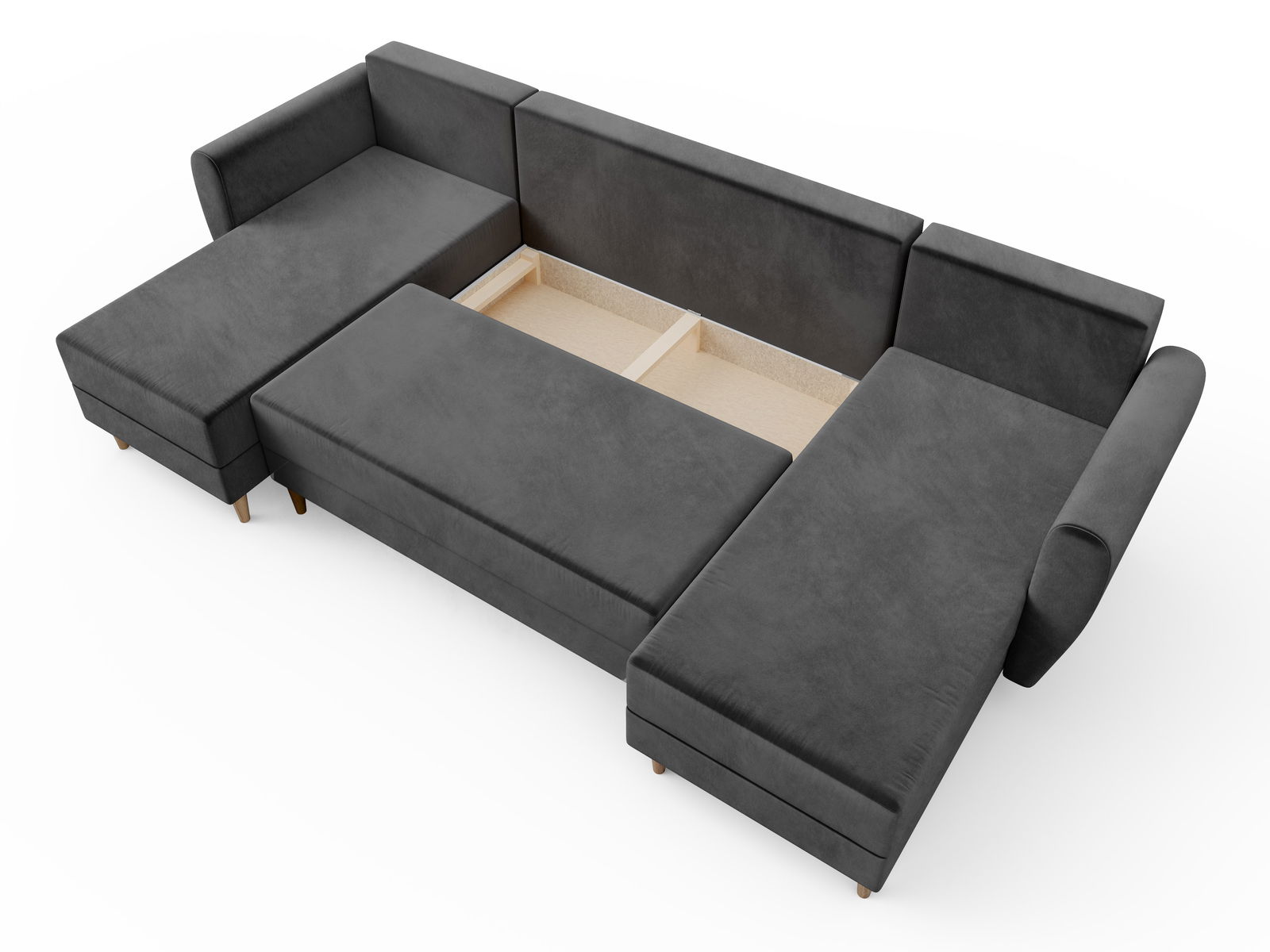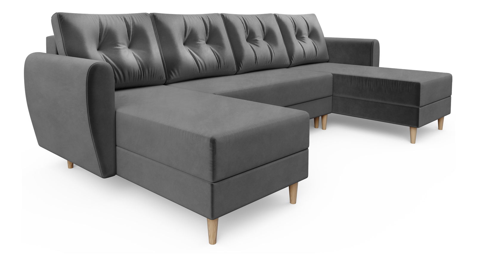 Moderní rohová sedačka Paladio ve tvaru U padne do oka každému, kdo má rád pěkný nábytek. Sedačku lze snadno rozložit, čímž získáte plochu na spaní. Vaše návštěva se tak může pohodlně vyspat na sedačce. K sedačce jsou čtyři polštáře na zip plněné PU pěnou. Celá sedačka je potažena látkou.