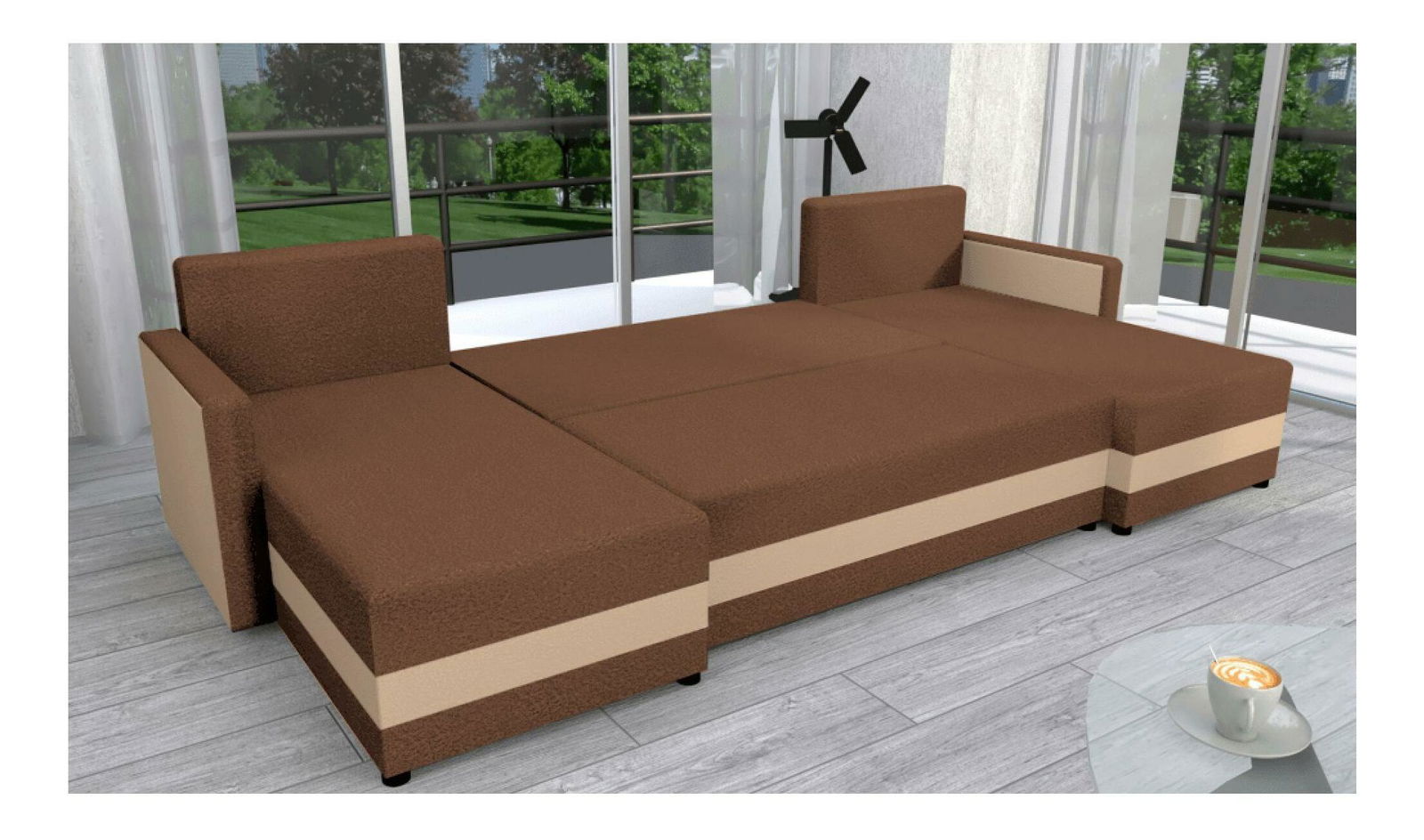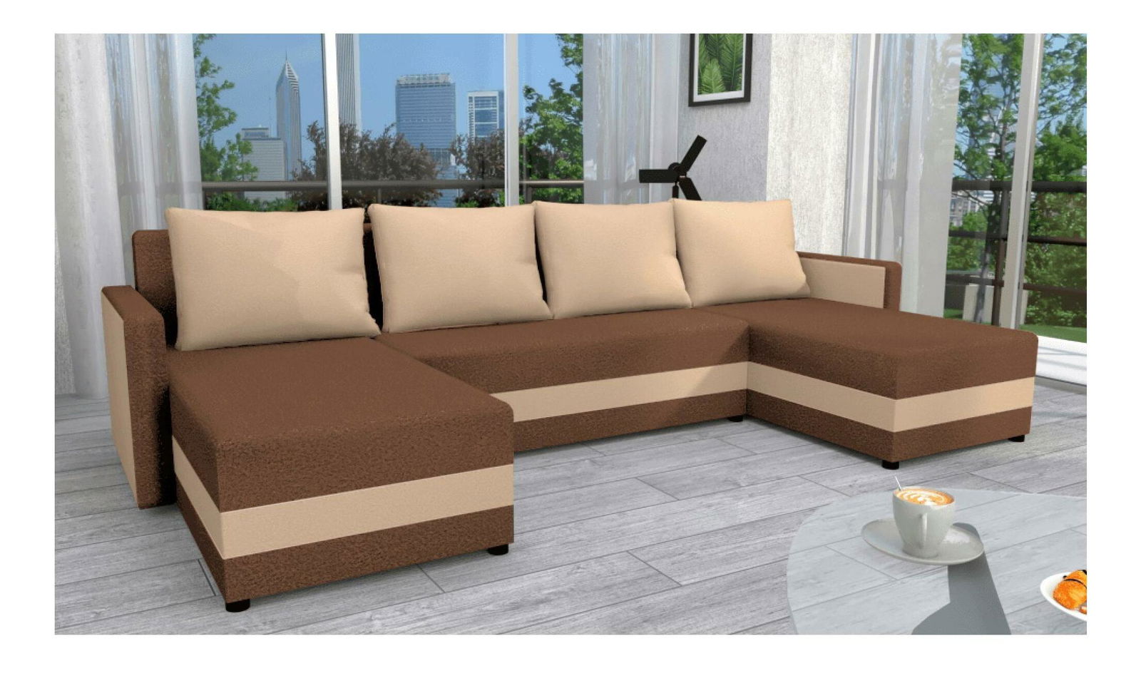 Rohová sedačka ve tvaru U Paulati (hnědá + béžová) (rozkládací s úl. prostorem)