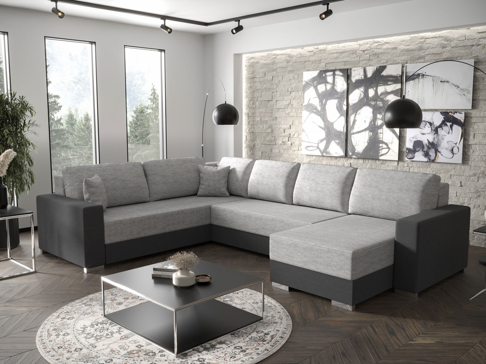 Rohová sedačka ve tvaru U- Pearle 3 (šedá + černá) (L)