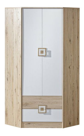 Rohová skříň NI02 Nikol (Dub světlý + Bílý + Dub světlý)