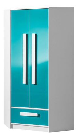 Rohová skříň RL02 Richard (Bílá + Tyrkysová)