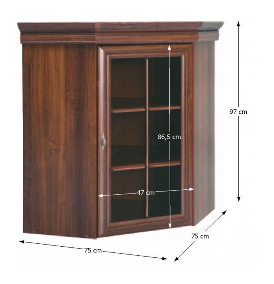 Rohová vitrína Kraz KNN1 s nástavbou je ideálním doplňkem vašeho nábytku do obývacího pokoje, jídelny, ložnice nebo pracovny. Vytvořte si vlastní vitrínu s prosklenými dvířky a uchovejte v ní své oblíbené předměty na dosah ruky. Barevné provedení v Samoa king dodává nástavbě elegantní a rustikální vzhled. Sektorový nábytek Kraz je známý svým masivním vzhledem, kovovými úchyty a zejména širokým výběrem prvků, ze kterých si můžete vybrat ty nejvhodnější pro vás. Materiál ze kterého je nástavba vyrobena, je laminována DTD, MDF a kov. Rozměry jsou 75x75x97 cm a tloušťka materiálu korpusu je 15 mm, vrchní i dolní desky jsou 22 mm. Nástavba se dodává v demontu. Zvolte si z nábytku Kraz a vytvořte si svoji vysněnou domácnost s rustikálním stylem.