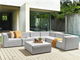 Výjimečný komfort sezení, šik design, funkčnost a nadčasová krása – to vše dokonale vystihuje tuto elegantní soupravu venkovního nábytku v neutrální šedé barvě. Hluboké sedátko zajišťuje neuvěřitelné pohodlí při sezení a práškem lakovaný kovový rám nabízí stabilitu. Tato sedací souprava vypadá nádherně v zahradě nebo na terase, ale může být také dokonalým doplňkem vašeho interiéru. Díky odolnému polyesterovému čalounění s pěnou Quick Dry je souprava ideální pro použití v exteriéru. Jednotlivé kusy lze umístit samostatně nebo spojit se středovým sedadlem a vytvořit velkou rohovou pohovku s taburetem.