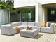 Výjimečný komfort sezení, šik design, funkčnost a nadčasová krása – to vše dokonale vystihuje tuto elegantní soupravu venkovního nábytku v neutrální šedé barvě. Hluboké sedátko zajišťuje neuvěřitelné pohodlí při sezení a práškem lakovaný kovový rám nabízí stabilitu. Tato sedací souprava vypadá nádherně v zahradě nebo na terase, ale může být také dokonalým doplňkem vašeho interiéru. Díky odolnému polyesterovému čalounění s pěnou Quick Dry je souprava ideální pro použití v exteriéru. Jednotlivé kusy lze umístit samostatně nebo spojit se středovým sedadlem a vytvořit velkou rohovou pohovku s taburetem.