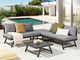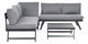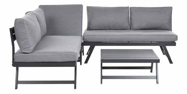 Tato zahradní souprava sestávající ze dvou samostatných pohovek a konferenčního stolku bude skvělým doplňkem každého venkovního prostoru. Rám vyrobený z hliníku je odolný vůči různým povětrnostním podmínkám a snadno se udržuje. Hrubé šedé polštáře zajišťují dokonalý komfort během sezení. Jedna z pohovek má nastavitelné sedátko, které lze zvednout, a tak ji lze přeměnit na lehátko ideální k odpočinku v zahradě. Jednotlivé moduly lze libovolně kombinovat a přizpůsobit je vnějšímu prostoru.