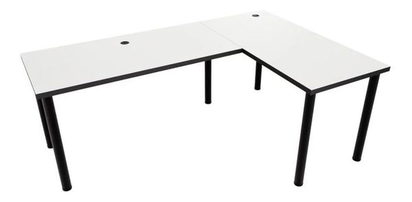 Rohový herní pc stůl Gamer N (bílá + černá) (P) vám umožní vytvořit dokonalé herní prostředí. kovovými nožičkami a orientací vpravo bude tento stůl perfektní volbou pro každého hráče. je vybaven dvěma otvory pro kabely pro uspořádání kabelů a nastavení výšky nožiček až o 3 cm umožní přizpůsobit stůl vašim potřebám. ,5x61,1x12,5 cm/20 kg si můžete být jisti, že vám tento stůl poskytne dostatek místa a pohodlí pro dlouhé hodiny hraní.