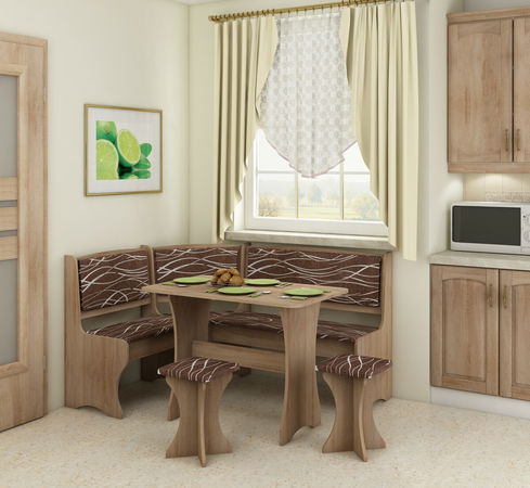 Rohový jídelní set složený ze dvou taburetek, jídelního stolu a lavice. Jídelní stůl v provedení dub sonoma světlá je svým rozměrem určen pro 4 osoby. Stůl má výšku 72 cm, šíře 100 cm a hloubku 60 cm. Rohová lavice na sezení pro 4 osoby, která uspokojí svou stabilitou a odolností. Provedení je dub sonoma světlá a čalouněný sedák je vyroben z kvalitní látky Safari. Rozměr rohové lavice je následující: 88 cm výška, 155 cm šířka a 120 cm hloubka. Taburetka, která uspokojí svou stabilitou a odolností, jelikož sedák je upevněn na křížový pevný dřevěný podstavec. Provedení je dub sonoma světlá a čalouněný sedák je vyroben z kvalitní látky Safari. Výška je 45 cm a šířka čtvercové základny je 30 cm.